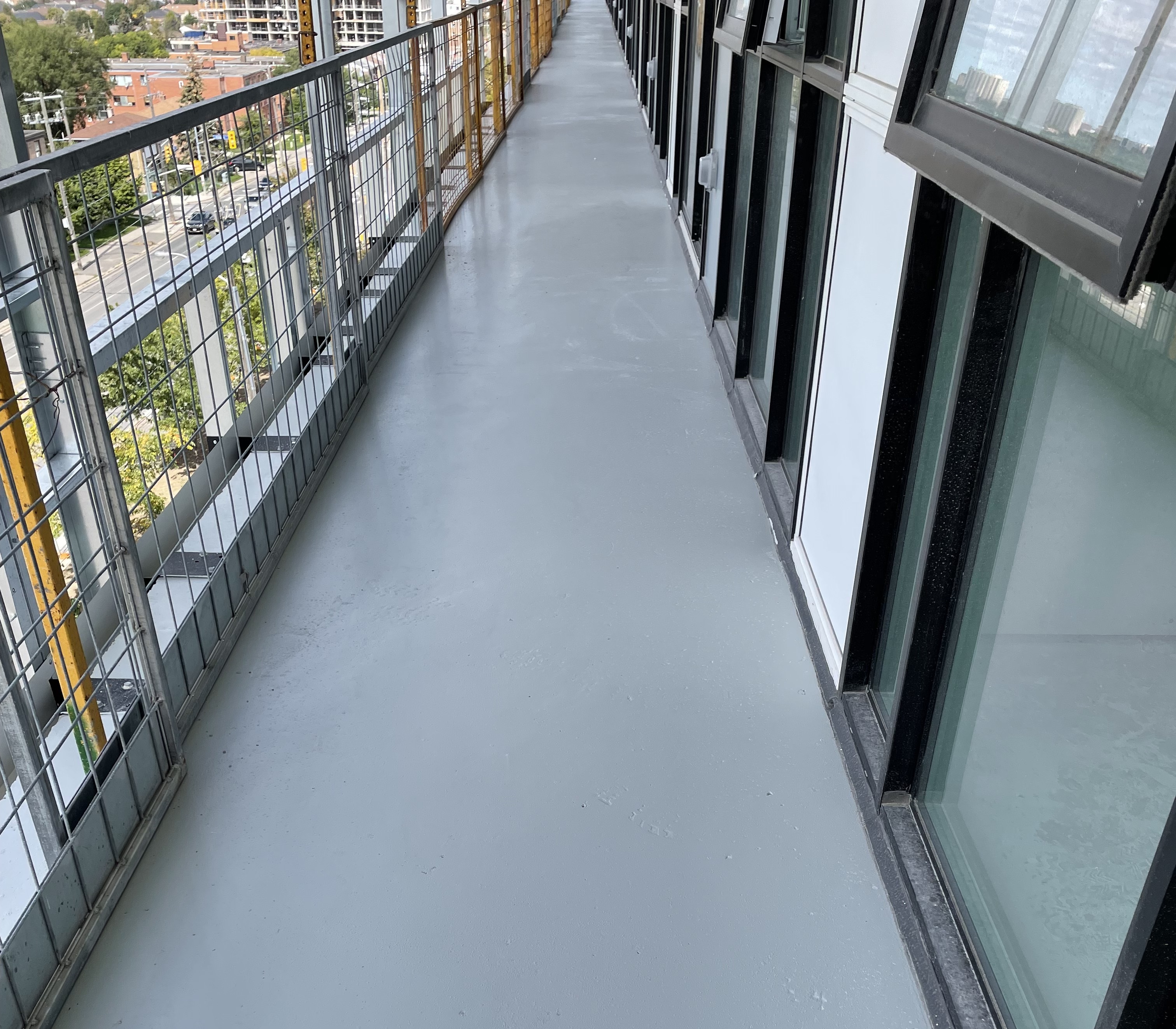 A 74,000 sq. ft. job of the highly advanced non-slip balcony deck coating system from Zeraus Products. It consists of ZeraDite 82NS (flexible urethane-modified epoxy primer/base coat) and ZeraClad W-35 (waterborne aliphatic urethane). Together they provide a long lasting highly attractive UV-resistant coating that protects the balcony deck from water, salts and sunlight degradation.