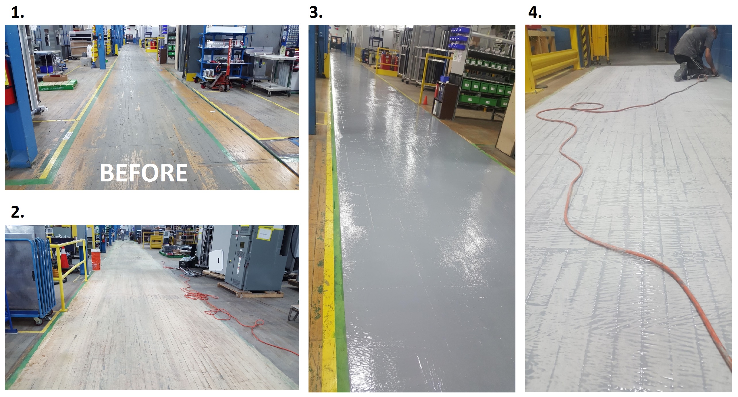 Yes, Zeraus flooring system can be applied over an aged industrial hardwood floor to bring it back to life. For more details, contact Zeraus. This job was installed by Floorsaver Inc.
